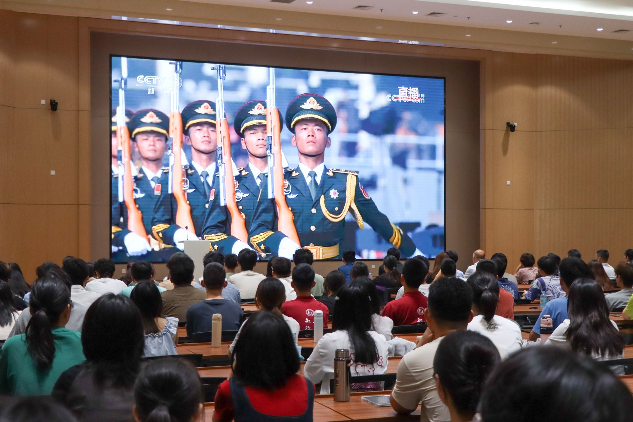 三校区师生集中收看大会实况,在教室、在会议室、在图书馆……认真学习习近平总书记重要讲话精神,讴歌伟大抗战精神,齐上一堂生动的爱国主义教育课。