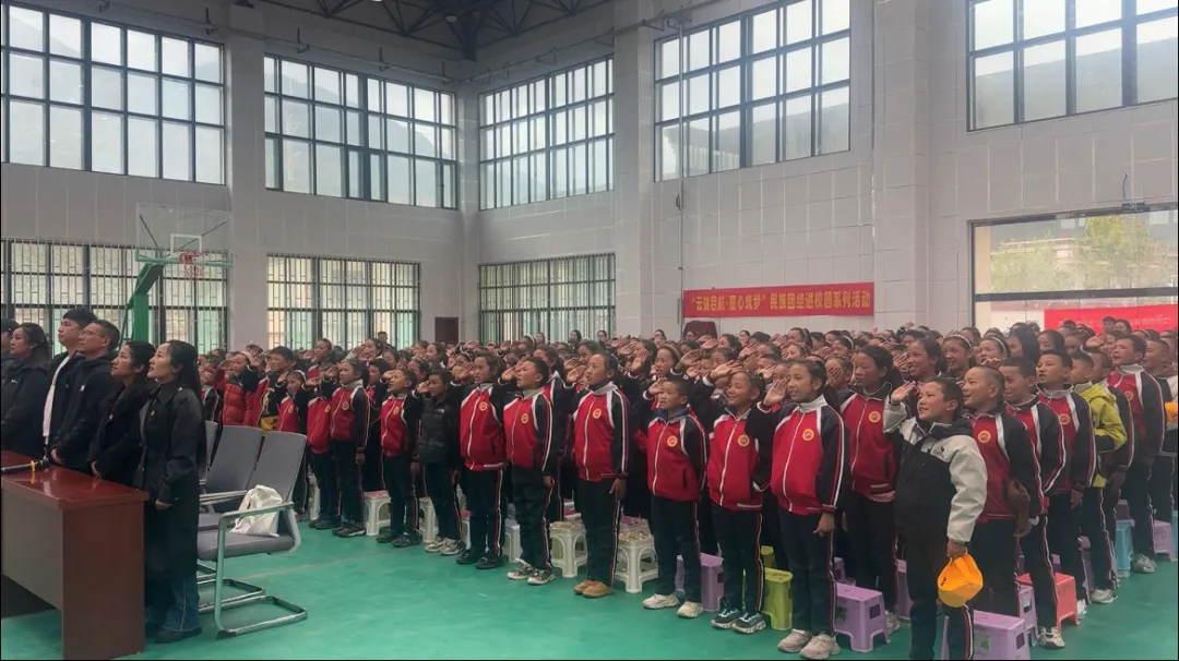 上午10时整,伴随着雄壮激昂的《义勇军进行曲》,两地师生肃立致敬,行注目礼,齐声高唱国歌。嘹亮的歌声穿越时空阻隔,将对伟大祖国的赤诚热爱与对民族团结的坚定信念,深深镌刻在每一位参与者的心中。两地师生举行了庄严的集体宣誓仪式,“守护民族团结,共筑复兴梦想”的誓言铿锵有力。