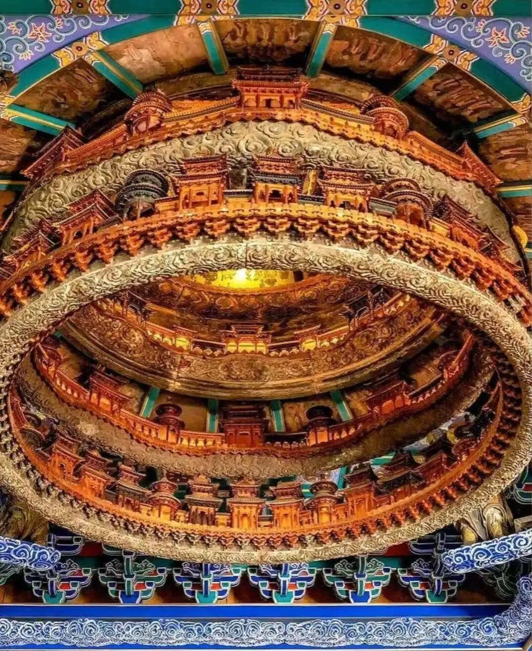 这是一座震撼心灵的建筑奇观,明代“天宫藻井”(现藏北京古代建筑博物馆),被誉为“中国最美藻井”。
