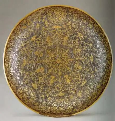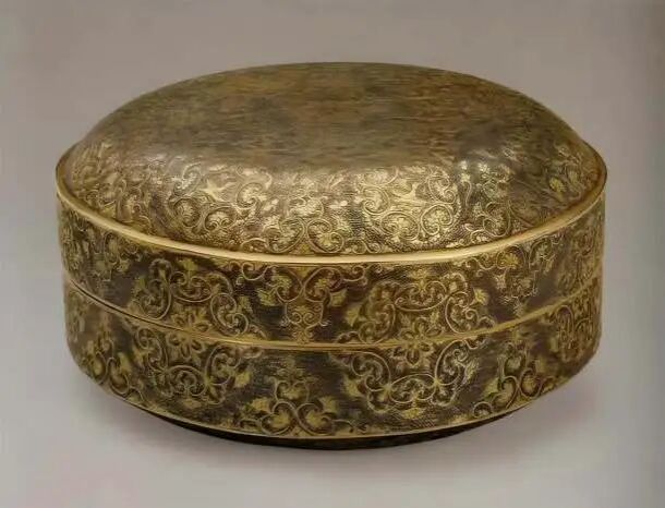 这个纹样来自于一件唐代珍宝——何家村窖藏鎏金石榴花纹银盒。