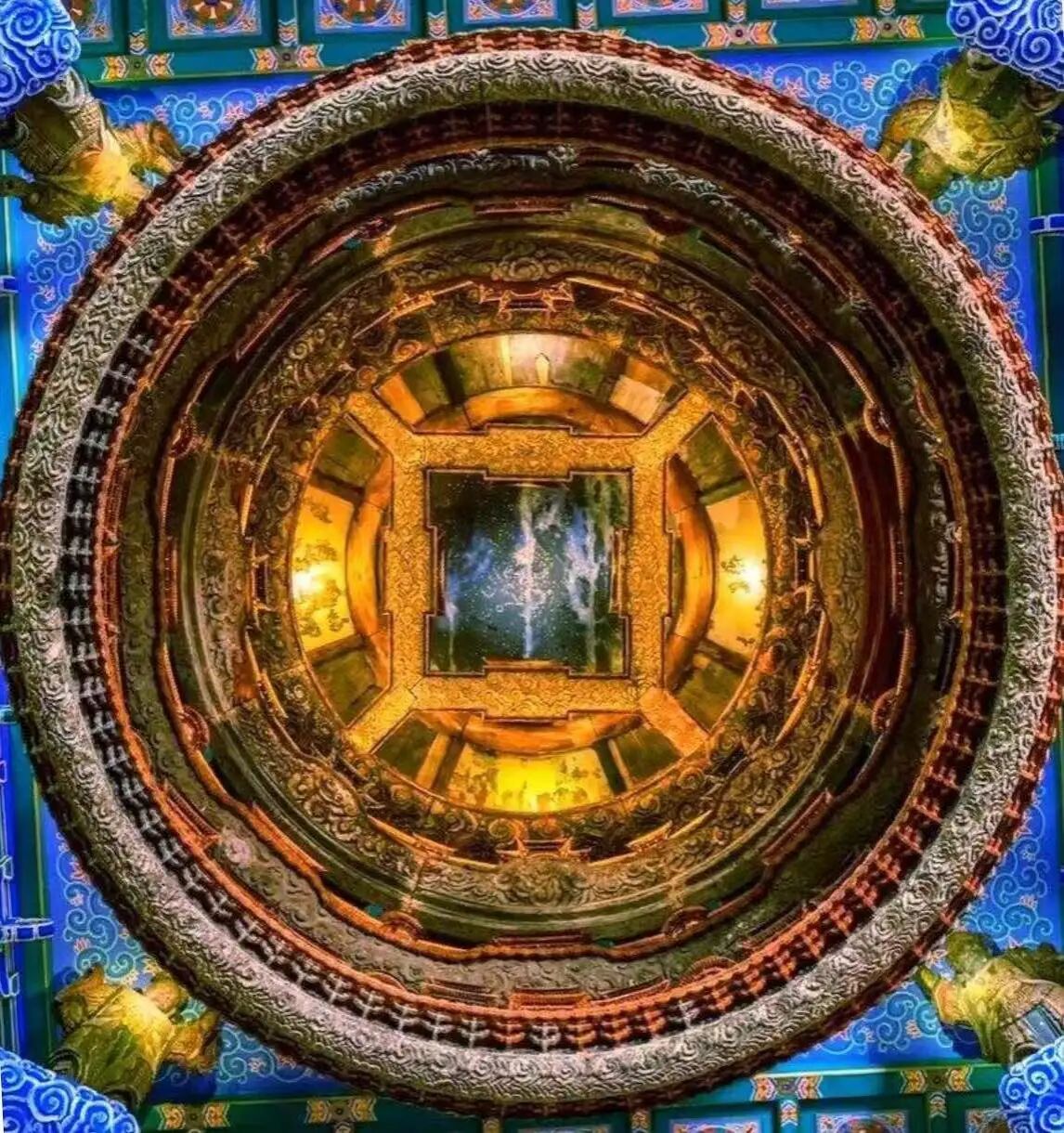 高达四米的建筑瑰宝,层叠斗拱以精妙榫卯,方中有圆,圆中有方,稳稳撑起一片壮阔“苍穹”。这是古人“天圆地方”宇宙观的具象,更是华夏文明“顶天立地”的精神象征:根基深扎大地,脊梁昂然向上。