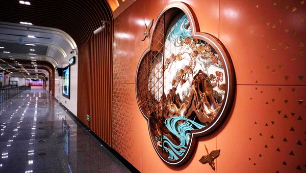 新闻网讯 近日,我校美术学院师生创作的“大运河文化”“德韵清风”公共艺术亮相北京地铁7号线东延段。东延段新增8个车站,其中两个重点车站花庄站和高楼金站的公共艺术创作,均由我校美术学院师生完成创作。