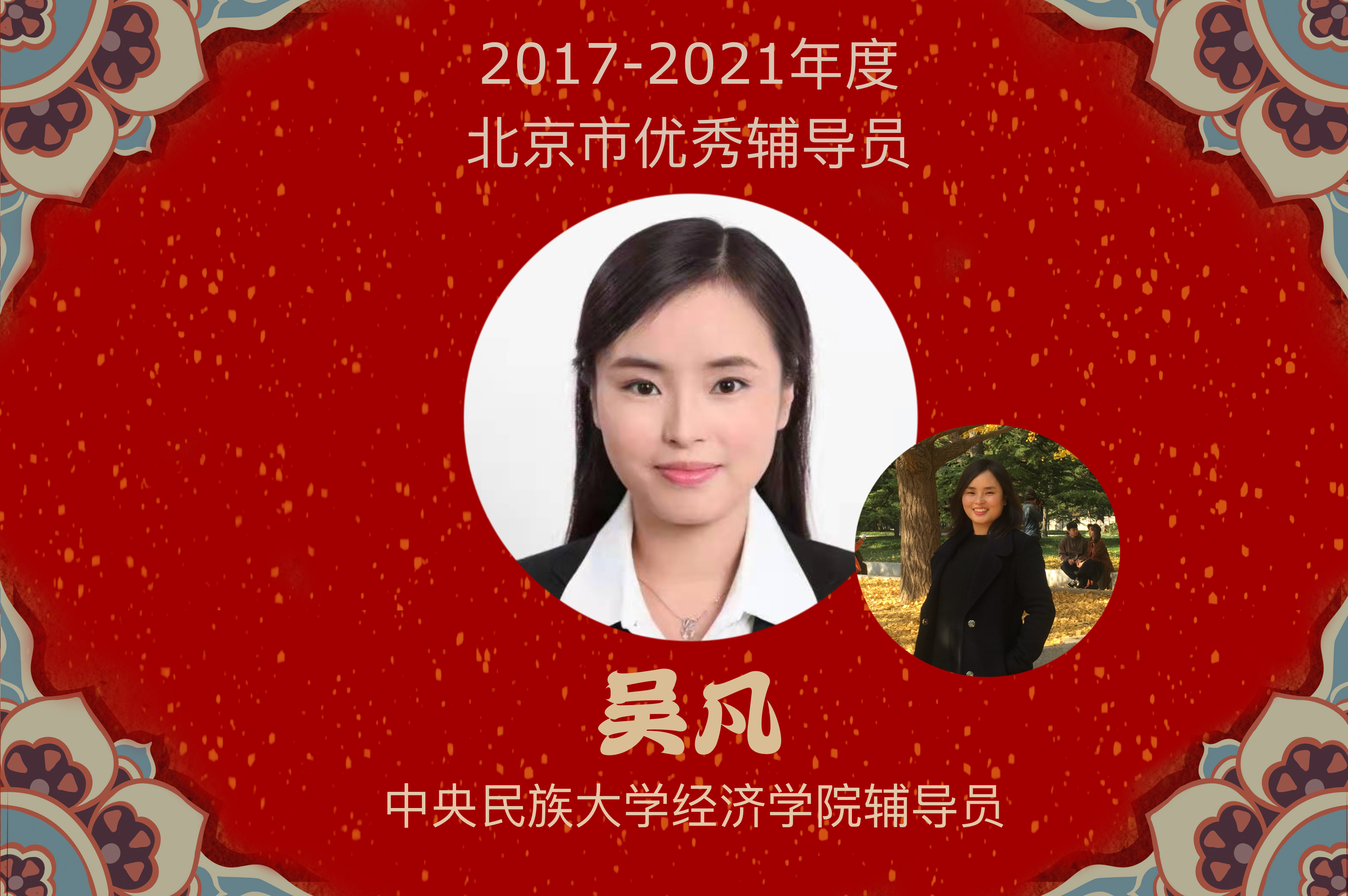 吴凡,经济学院一线专职辅导员,学院党团与学生工作办公室主任、经济学院行政教工党支部书记。始终忠诚和服务于党的民族教育事业,坚定理想信念,积极开拓进取、工作成绩突出。一切的困难,所有的问题,都是成为思想政治工作“行家里手”的开山石。做课题,读博士,将理论和实践相结合,为真正成为政治觉悟高,业务能力强的“专业型”辅导员而不懈努力。